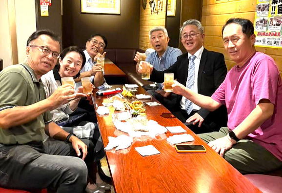 2025年(令和7)年9月20日(土)に、須崎市の食事処喜楽で、第5回高幡支部総会が開催されました。同窓会本部からは、野本裕之会長(21期)、宮地 明副会長(14期)が、学校からは、橋本和紀校長先生が、参加され行われました。和気藹々の楽しい楽しい支部総会でした。 是非、高幡支部の同窓会支部総会に参加しましょう。一緒に楽しい時間を過ごしましょう。 ※高幡支部総会は、これからも毎年9月の第3土曜日、午後6時から「食事処 喜楽」にて開くことにしていますので、よろしくお願いします。 |