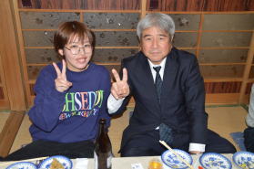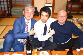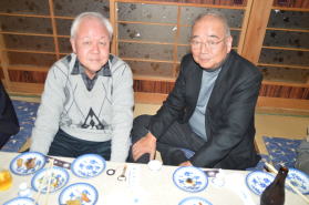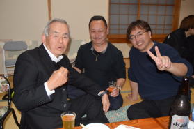 | 2次会中 | 2次会中(野本同窓会会長と) | ||